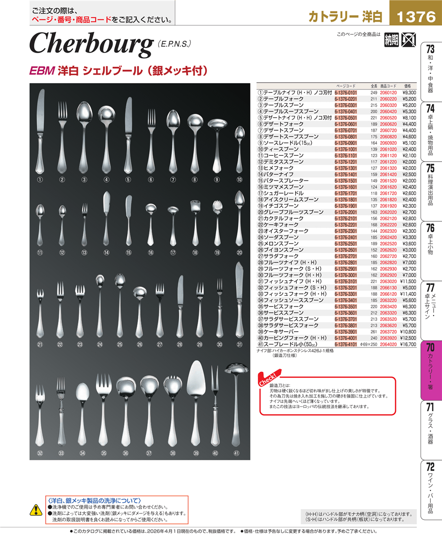 | e26-2060120 | EBM 洋白 シェルブール(銀メッキ付)テーブルナイフ ノコ刃付 | 上代 9,300円(税抜) 見積