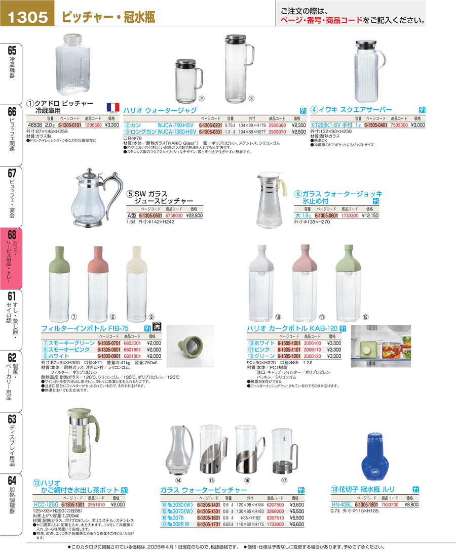 | e26-6738000 | SW ガラス ジュースピッチャー A型 1.5L | 上代 22,800円(税抜) 見積 | ||