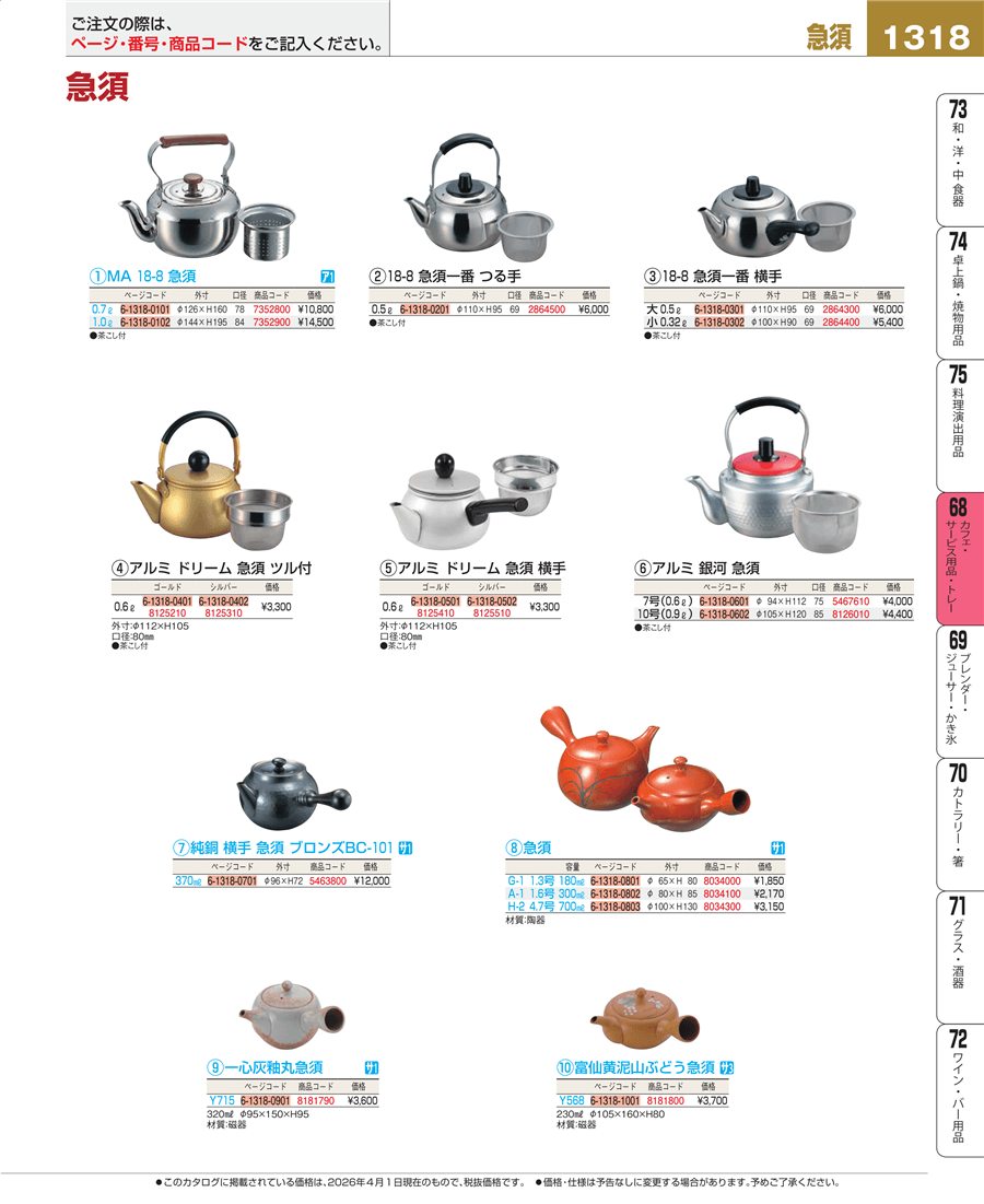 | e26-7352800 | MA 18-8 急須 0.7L ストレーナー付 | 上代 10,800円(税抜) 見積 | ||