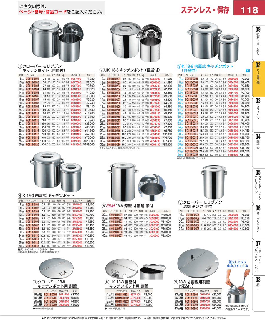 カタログEBM業務用厨房用品カタログvol.26「ガス専用鍋」リストに戻る。