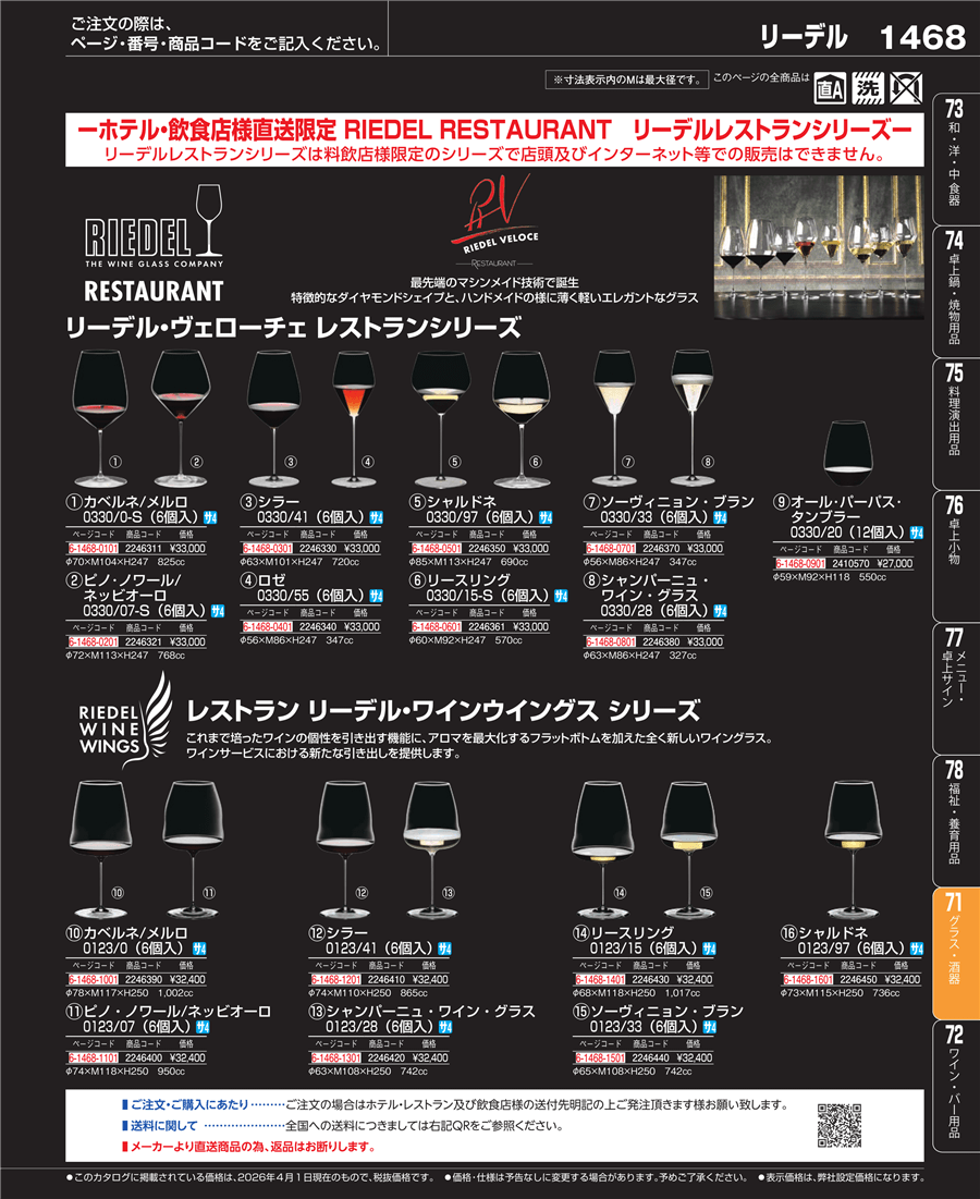| e26-2246410 | レストラン リーデル・ワインウイングス シラー 0123/41 (6個入) | 上代 32,400円(税抜) 見積