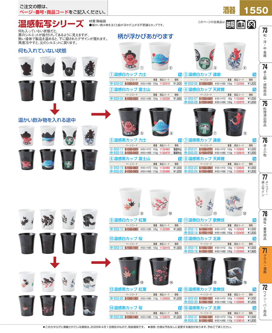 | e26-1133010 | 温感黒カップ 北斎 中 B52-32 | 上代 1,200円(税抜) 見積 | ||