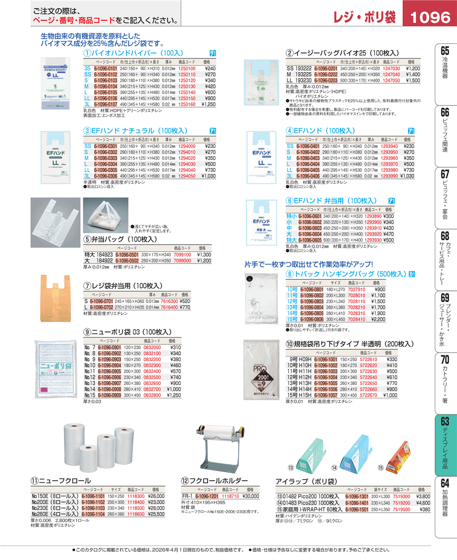 | e26-1294010 | ポリエチレン手堤袋 EFハンド ナチュラル(100枚入)S | 上代 270円(税抜) 見積 | ||