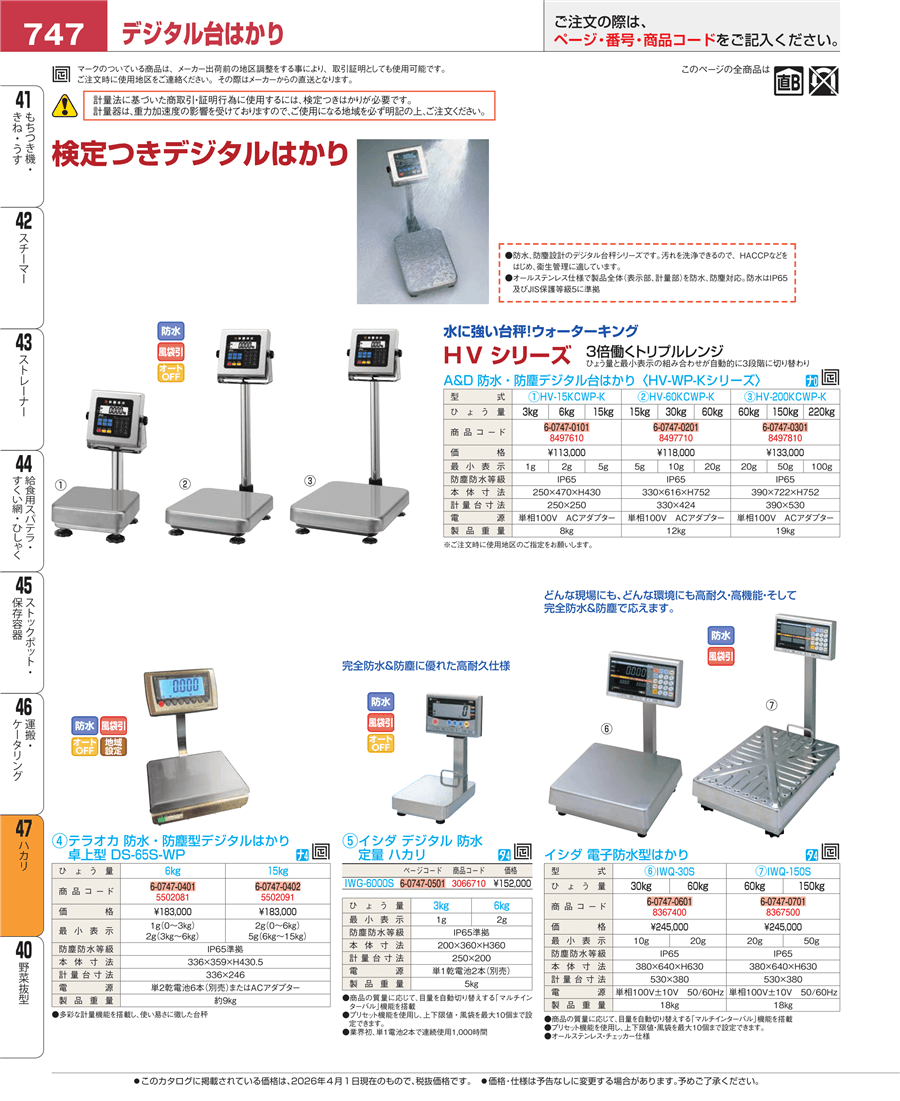 | e26-8497710 | A&D 防水・防塵デジタル台はかり HV-60KCWP-K 検定済品 | 上代 118,000円(税抜) 見積 | ||