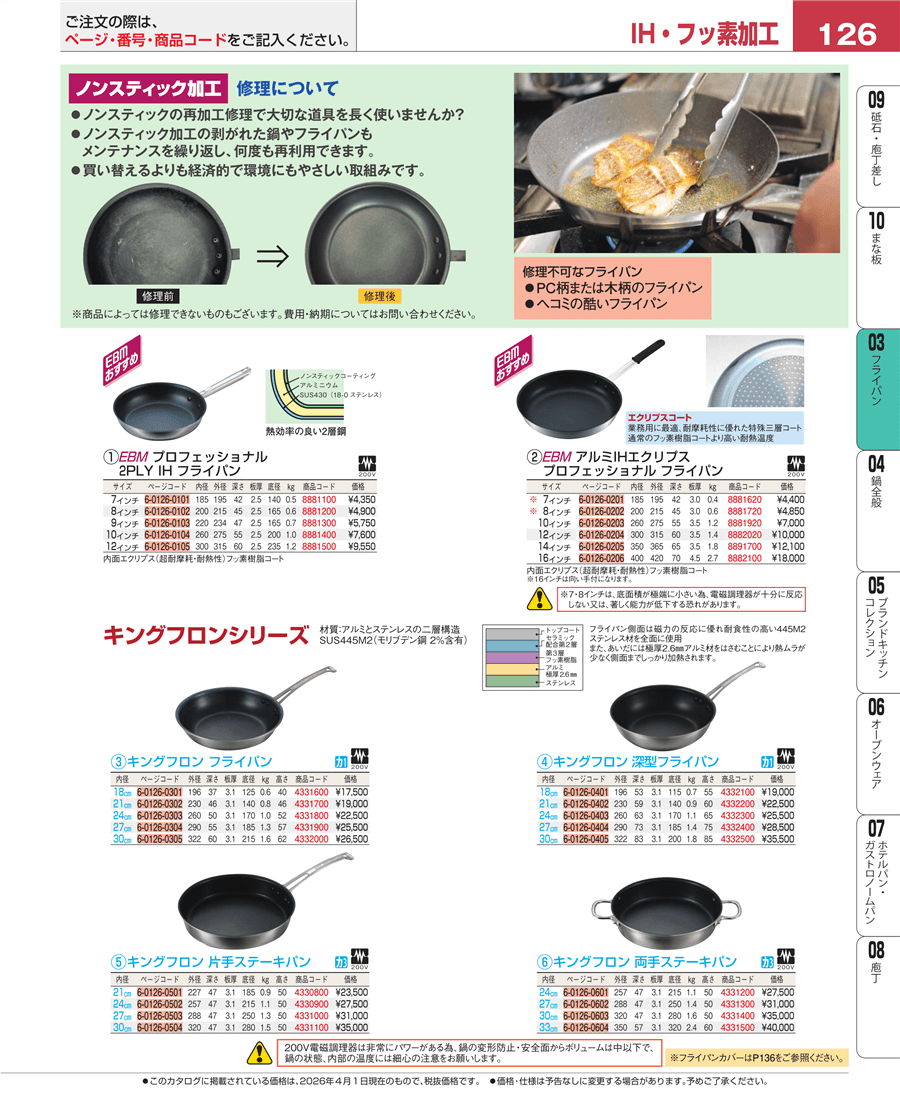 | e26-8881400 | EBM プロフェッショナル 2PLY IHフライパン 10吋 | 上代 7,600円(税抜) 見積