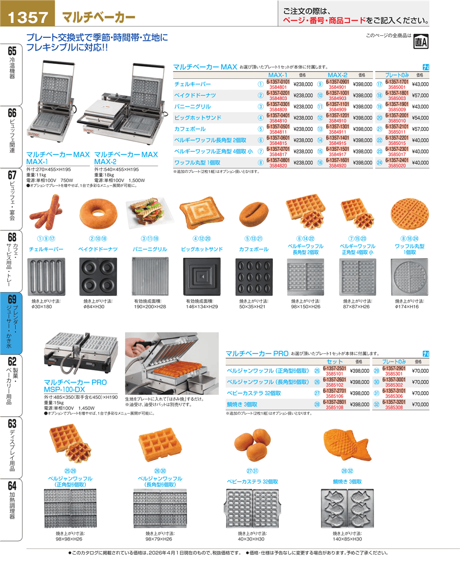 | e26-3585020 | マルチベーカー MAX用プレート ワッフル丸型1個取 2枚組 WFR0101 | 上代 40,000円(税抜) 見積