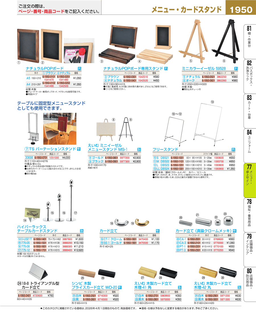 | e26-4720600 | 18-8 トライアングル型カード立て | 上代 760円(税抜) 見積 | ||