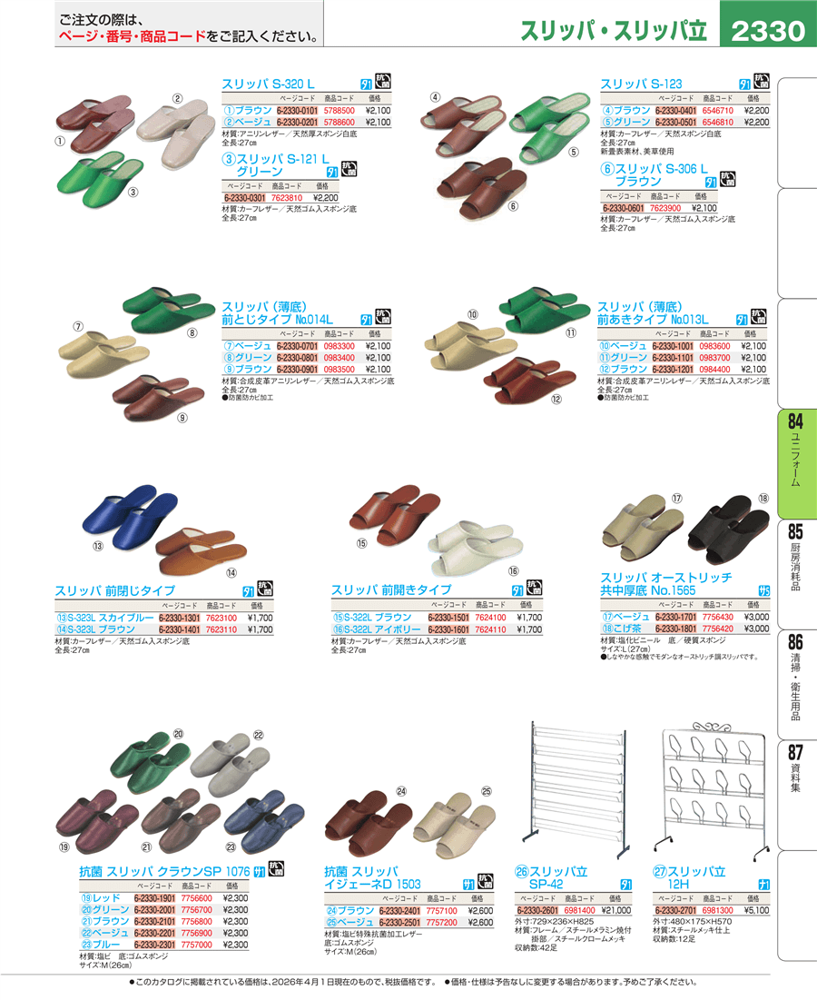 e26-0983600スリッパ(白薄底)前あきタイプ №013L ベージュ(06)上代 2,100円(税抜)