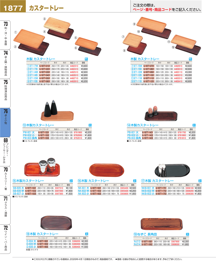 | e26-3306300 | 木製 カスタートレー NKB-603 小 | 上代 1,800円(税抜) 見積 | ||