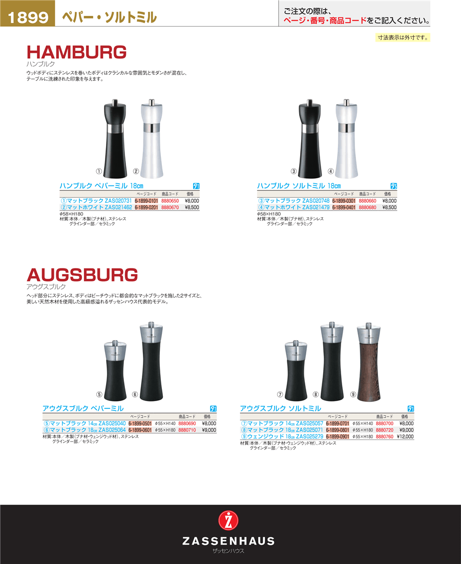 | e26-8880720 | ザッセンハウス アウグスブルク ソルトミル MBK 18㎝ ZAS025071 | 上代 9,000円(税抜) 見積 | ||