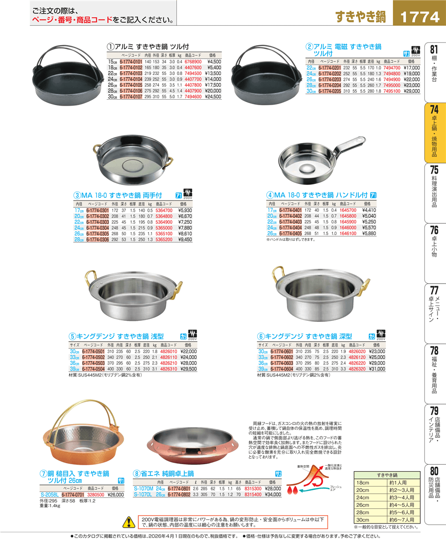 | e26-4826020 | キングデンジ すきやき鍋 深型 30㎝ | 上代 23,000円(税抜) 見積 | ||