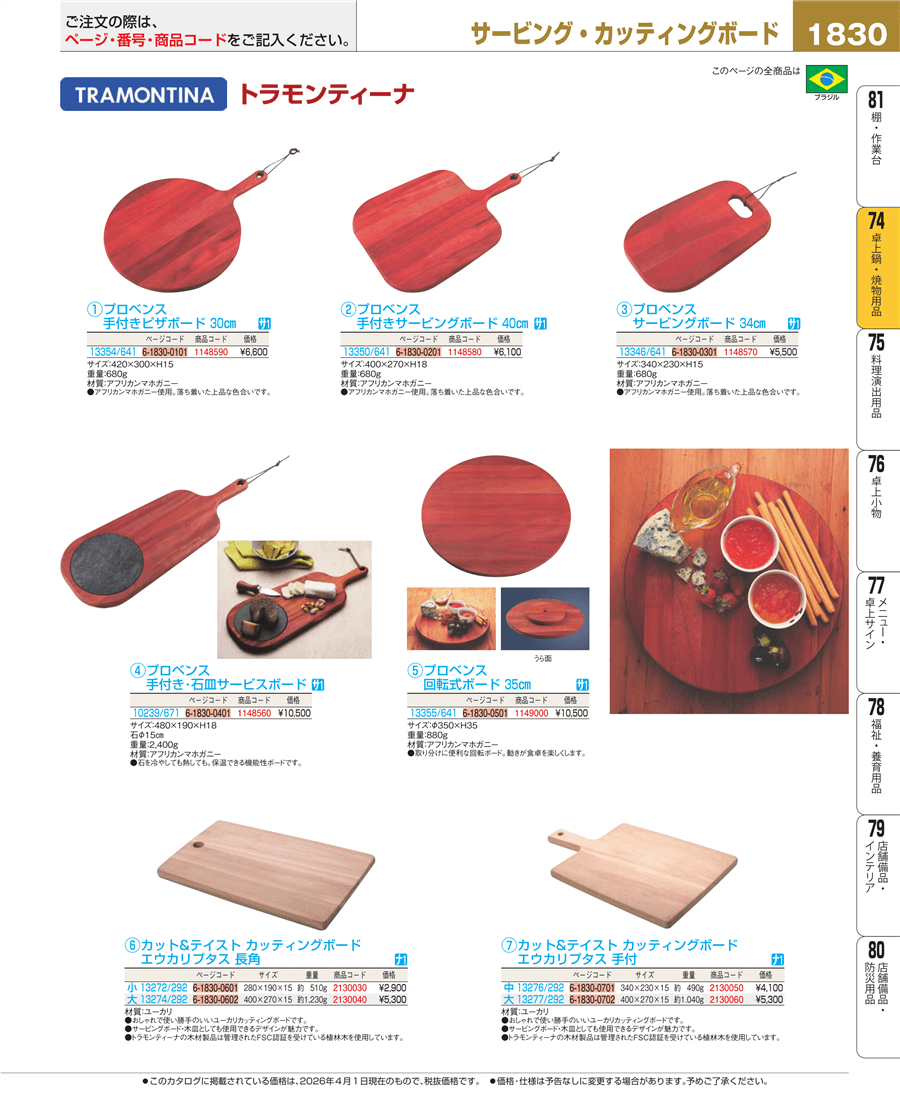 | e26-2130050 | トラモンティーナ カット&テイスト カッティングボード エウカリプタス 手付 中 13276/292 | 上代 4,100円(税抜) 見積 | ||