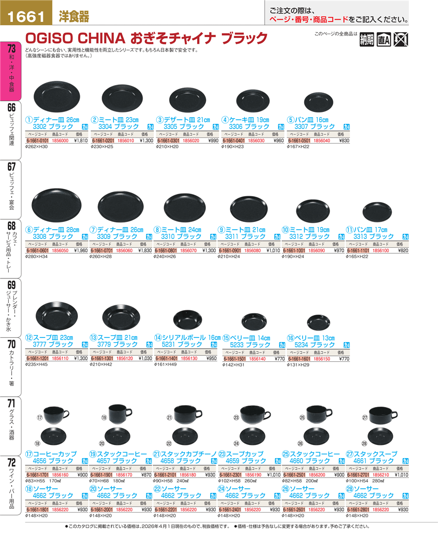 | e26-1856220-1661 | おぎそチャイナ ソーサー 4662 ブラック | 上代 930円(税抜) 見積 | ||