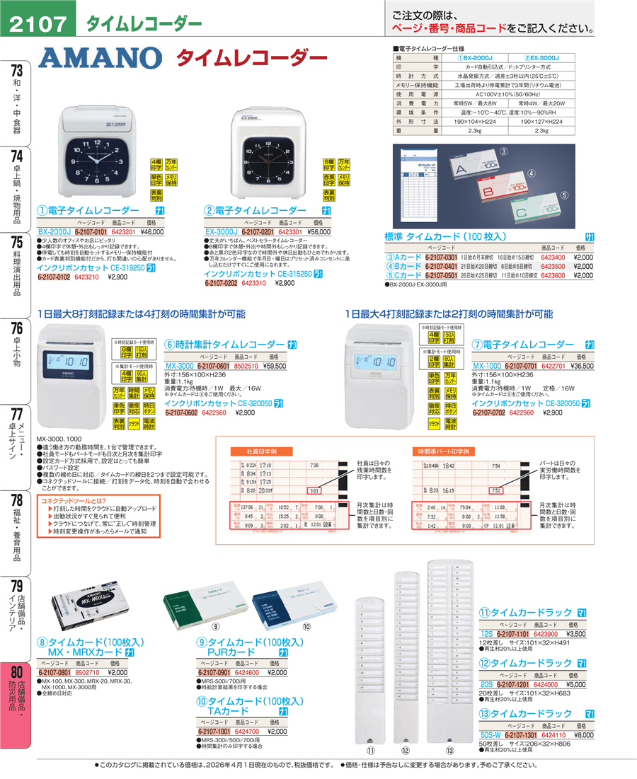 | e26-6422701 | 電子タイムレコーダー MX-1000 | 上代 36,500円(税抜) 見積 | ||