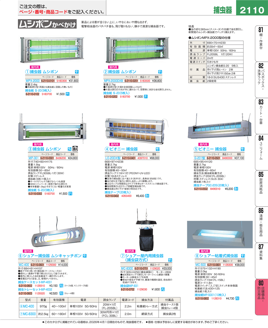 | e26-5183300 | 捕虫器 ムシポン MPX-2000 | 上代 31,800円(税抜) 見積 | ||