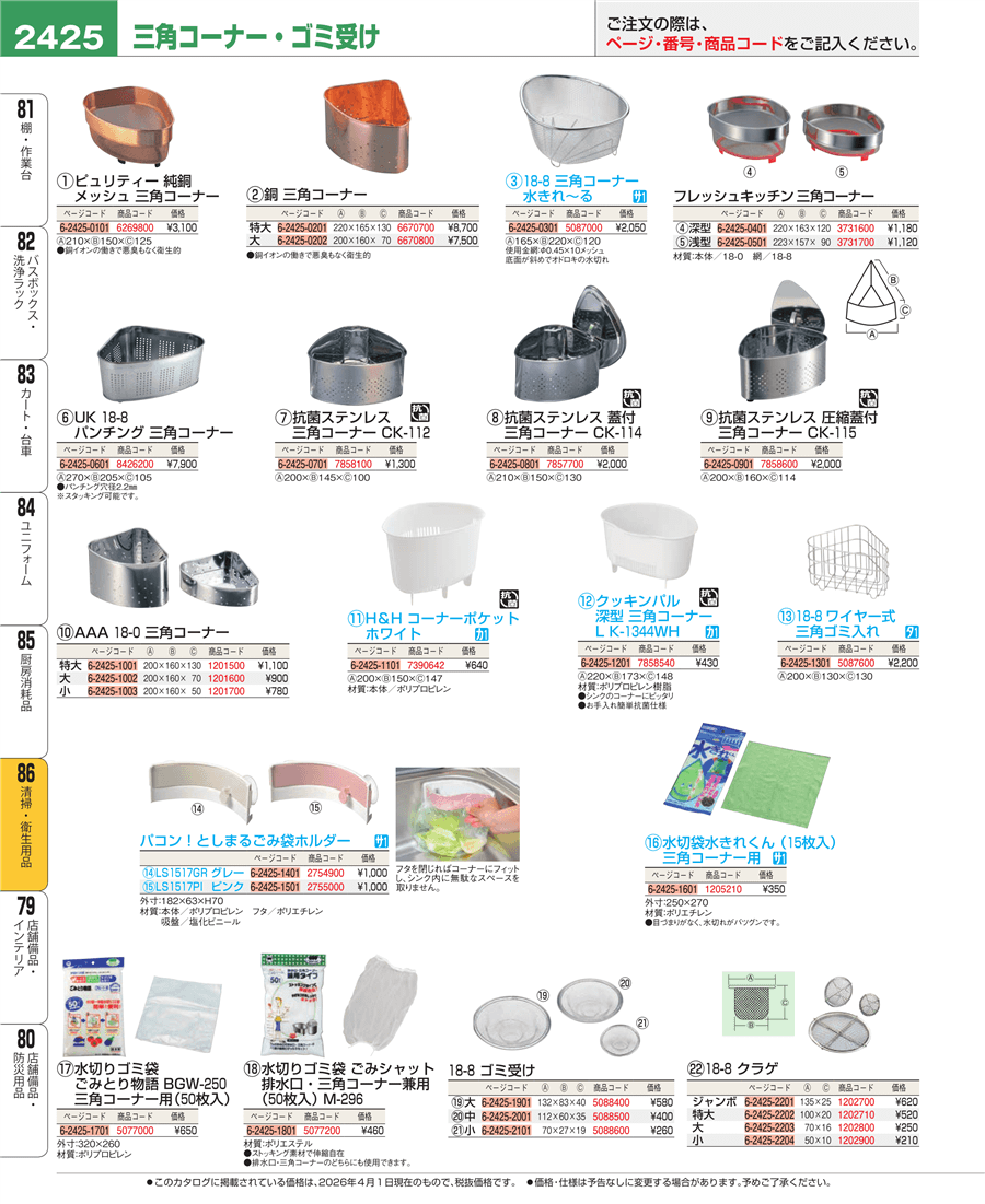 | e26-7858600 | 抗菌ステンレス 圧縮蓋付 三角コーナー CK-115 | 上代 2,000円(税抜) 見積 | ||