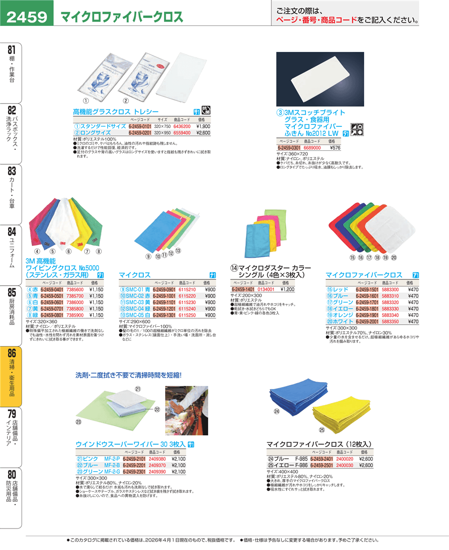 | e26-6689000 | 3M スコッチブライト グラス・食器用マイクロファイバーふきん №2012LW | 上代 576円(税抜) 見積 | ||