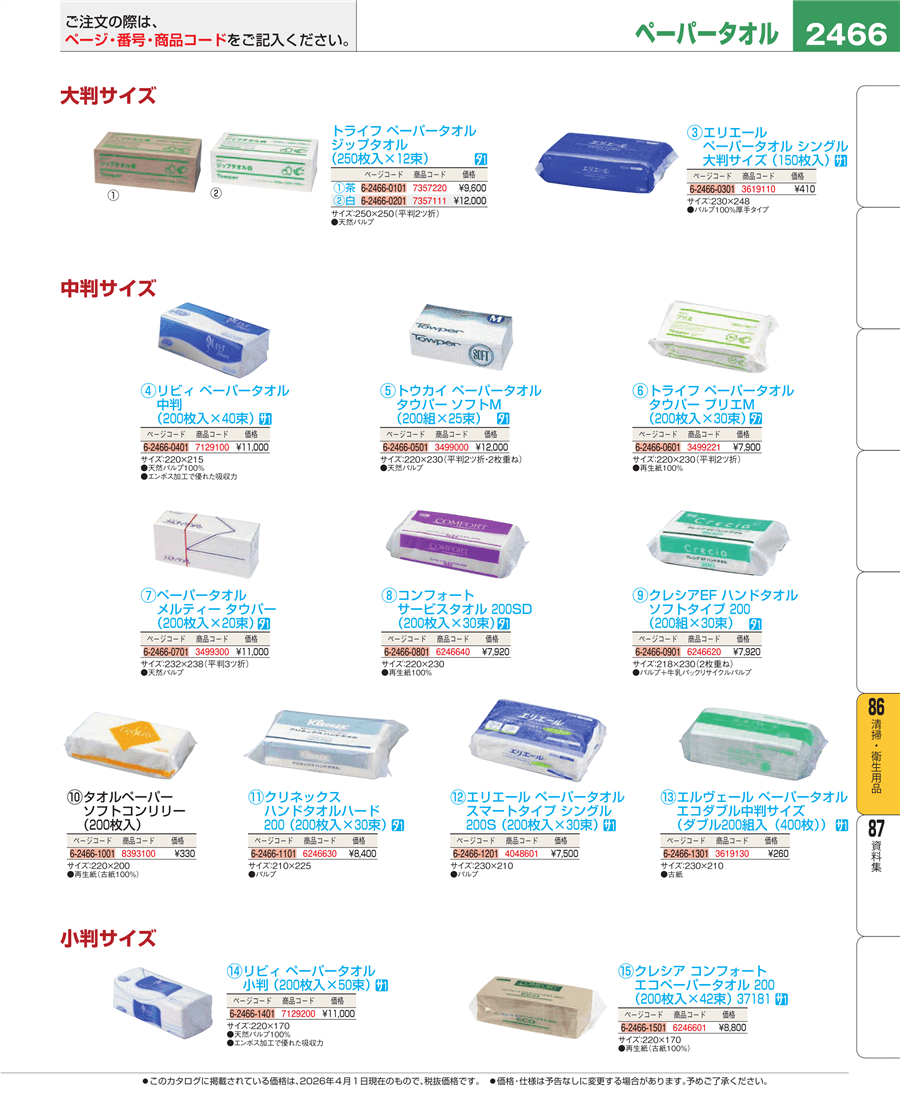 | e26-7357111 | トライフ ペーパータオル ジップタオル(250枚×12束)白 | 上代 12,000円(税抜) 見積 | ||