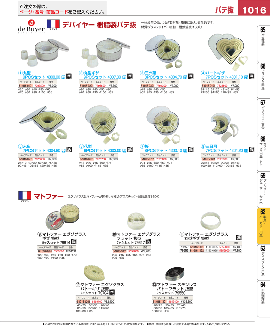 | e26-5559400 | マトファー ステンレス バトーフラット 抜型 7ヶ入セット 79550 | 上代 133,800円(税抜) 見積 | ||