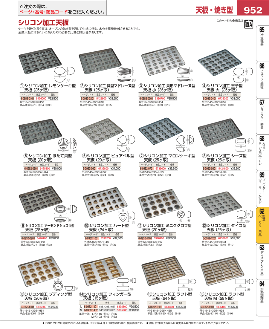 | e26-5396700 | シリコン加工 貝形マドレーヌ型 天板 小(36ケ取) | 上代 35,500円(税抜) 見積 | ||