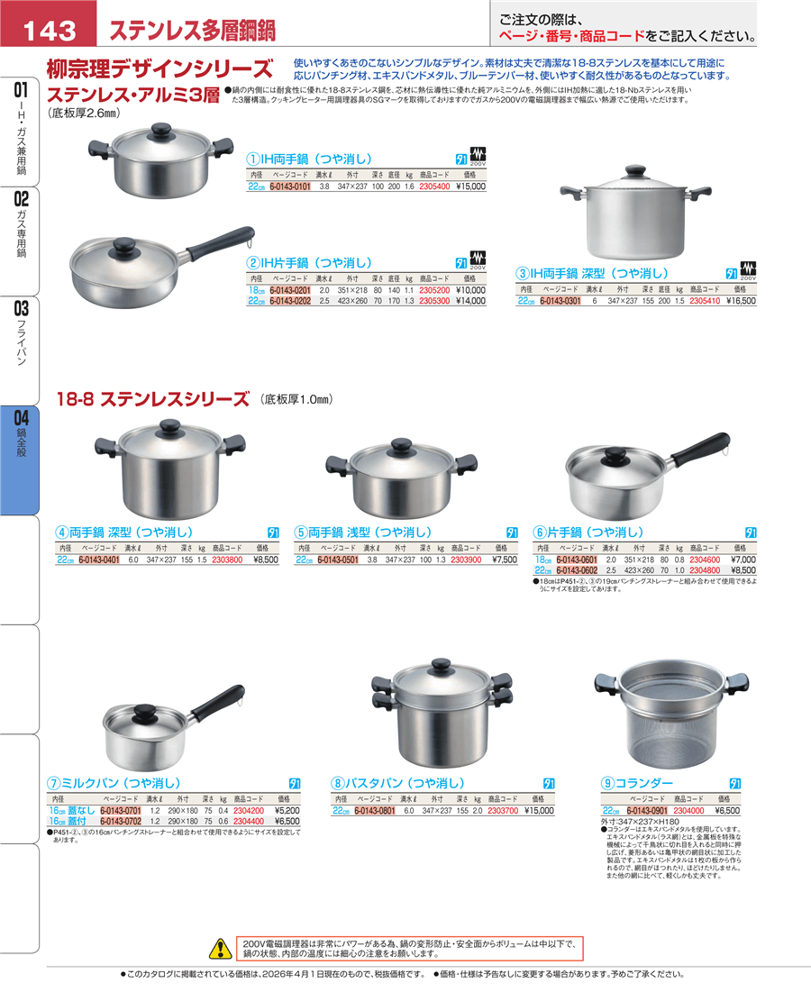 | e26-2305410 | 柳宗理 IH両手鍋 深型(つや消)22㎝ | 上代 16,500円(税抜) 見積 | ||