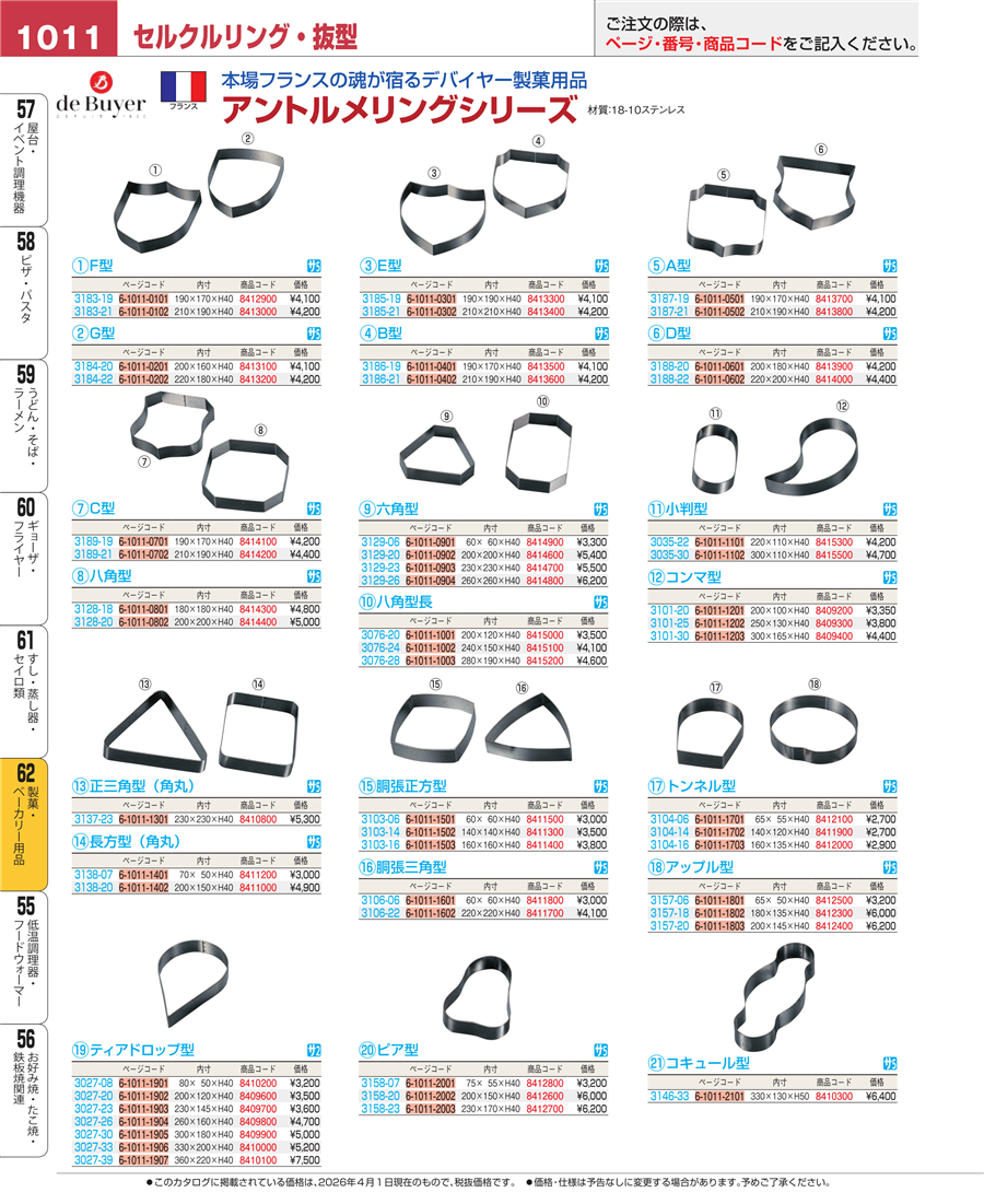 | e26-8410300 | デバイヤー 18-10 アントルメリング コキュール型 3146-33 | 上代 6,400円(税抜) 見積