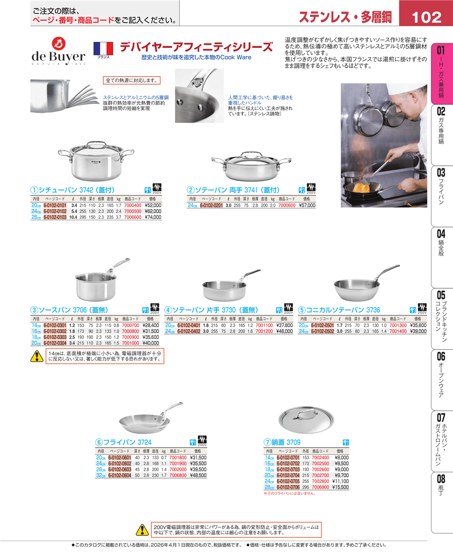 e26-7001100デバイヤー アフィニティ ソテーパン片手(蓋無)3730-20㎝上代 37,800円(税抜)