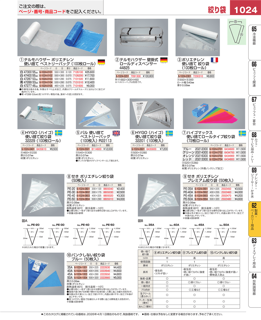 e26-2502470せき ポリエチレン プレミアム絞り袋 PE-45A(50枚入)上代 4,200円(税抜)