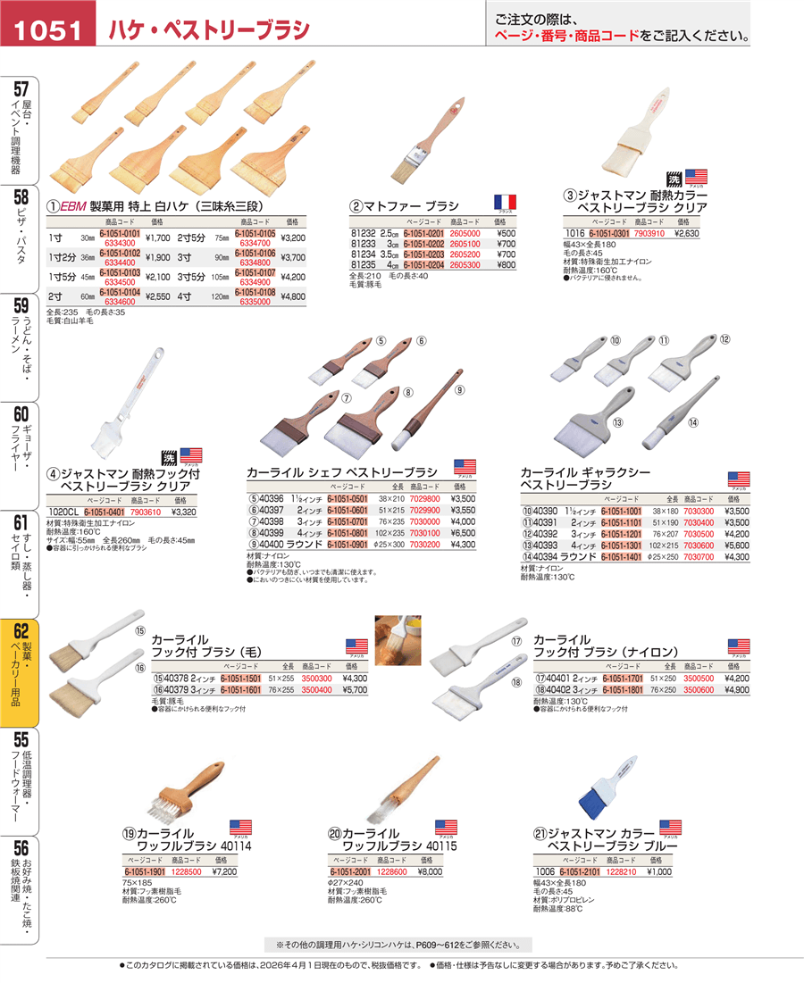 | e26-7029900 | カーライル シェフ ペストリーブラシ 40397 2インチ | 上代 3,550円(税抜) 見積 | ||