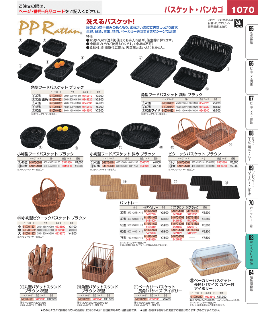 | e26-0345360 | PPラタン 小判型フードバスケット 60型 ブラック VB-940-BK | 上代 7,000円(税抜) 見積