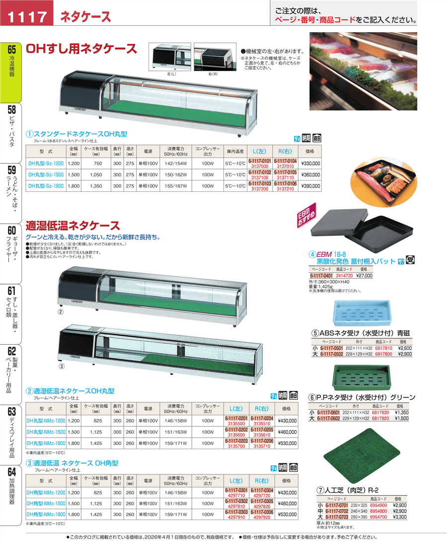 e26-3137100OHすし用 スタンダード ネタケース OH丸型-Sc-1500L(左)上代 360,000円(税抜)