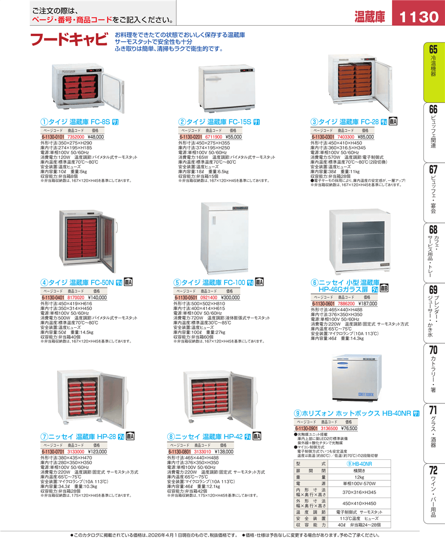 | e26-3133010 | ニッセイ 温蔵庫 HP-42 | 上代 138,000円(税抜) 見積 | ||