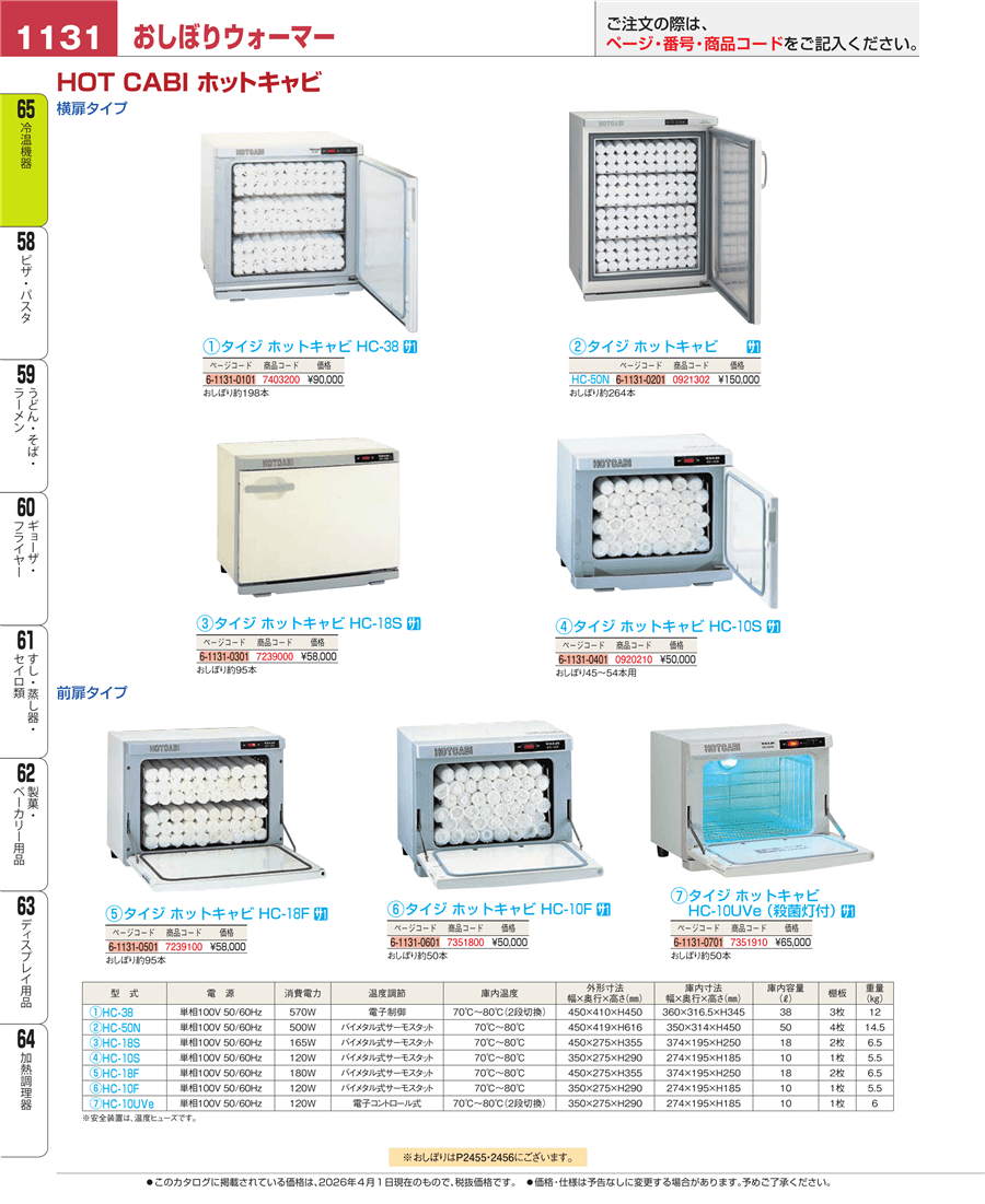| e26-7351910 | タイジ ホットキャビ HC-10UVe(殺菌灯付) | 上代 65,000円(税抜) 見積 | ||