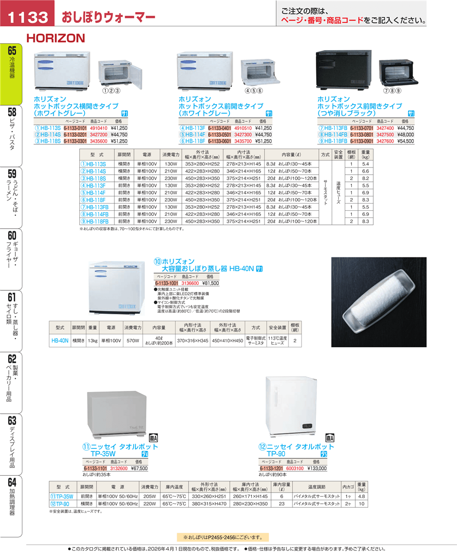 e26-3136600ホリズォン 大容量おしぼり蒸器 HB-40N上代 81,500円(税抜)