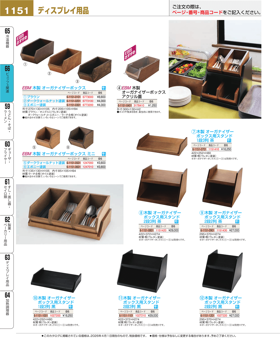 | e26-1151420 | 木製 オーガナイザーボックス用スタンド 2段3列 茶 | 上代 29,000円(税抜) 見積 | ||