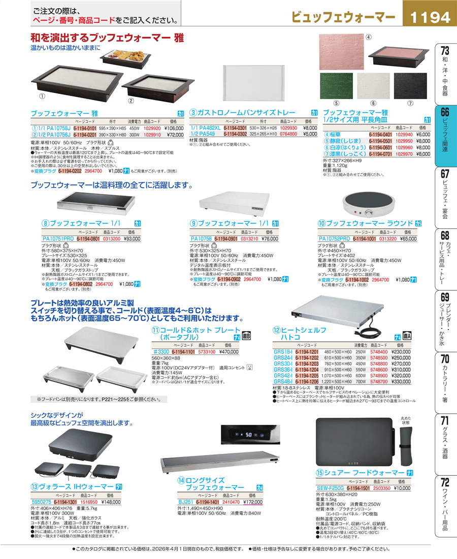 | e26-1029920 | ブッフェウォーマー 雅 1/1 PA10758J | 上代 106,000円(税抜) 見積 | ||