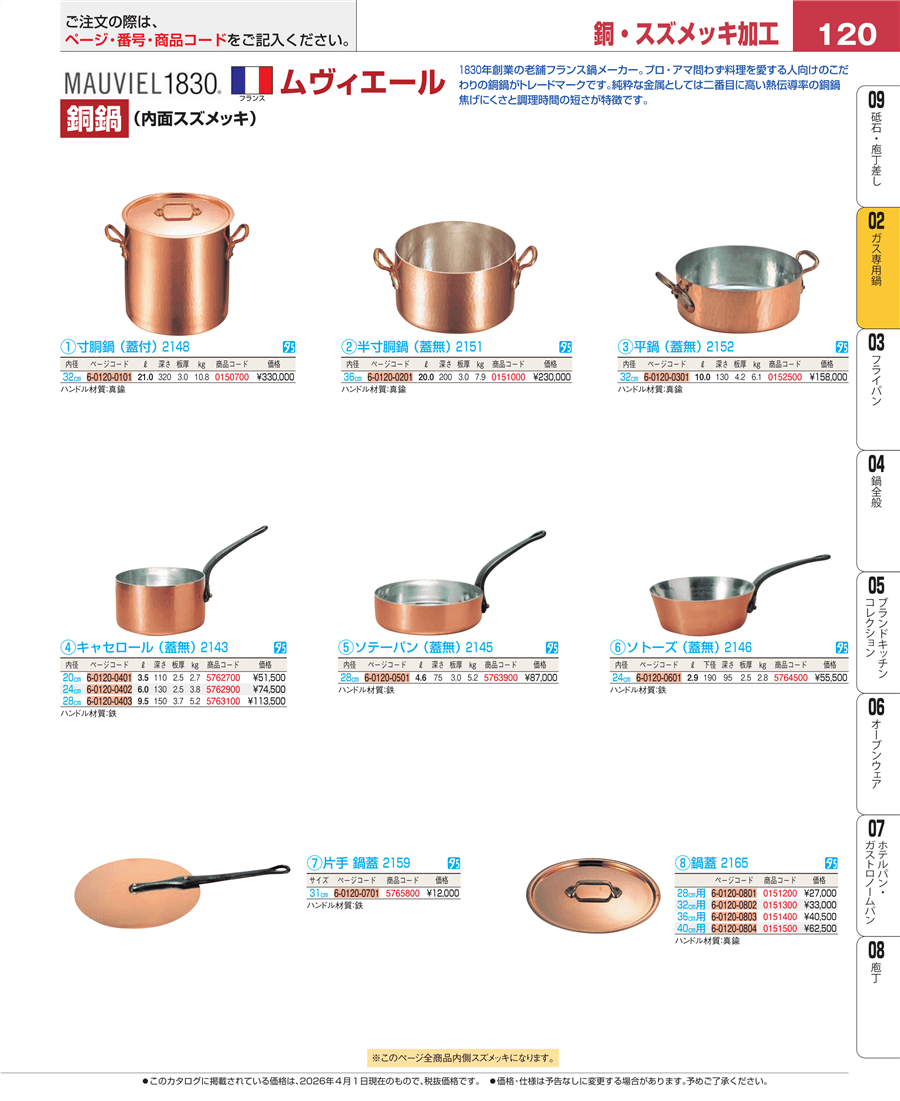 | e26-0151300 | ムヴィエール 銅 鍋蓋 2165-32 32㎝用 | 上代 33,000円(税抜) 見積 | ||