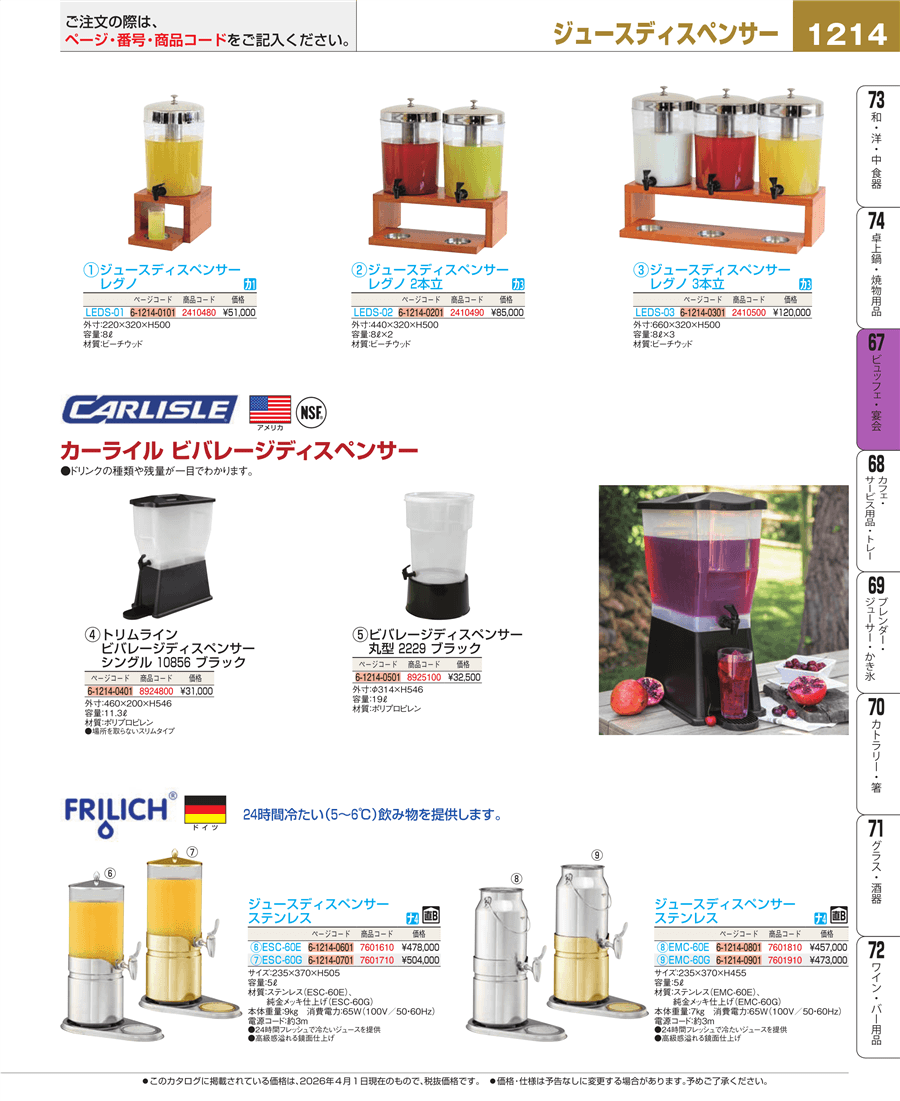 | e26-7601910 | ジュースディスペンサー ステンレス EMC-60G | 上代 473,000円(税抜) 見積 | ||