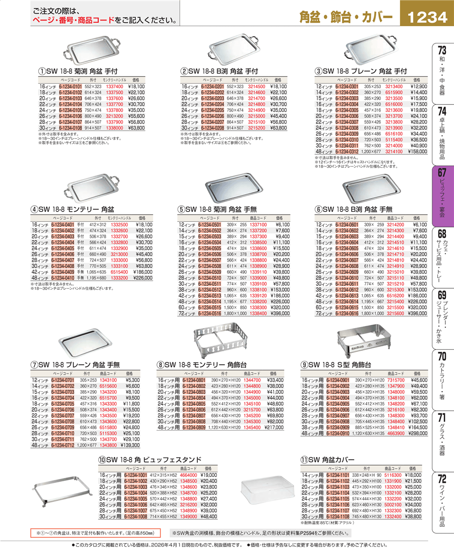 e26-1338400SW 18-8 菊渕 角盆 72インチ 手無上代 396,000円(税抜)