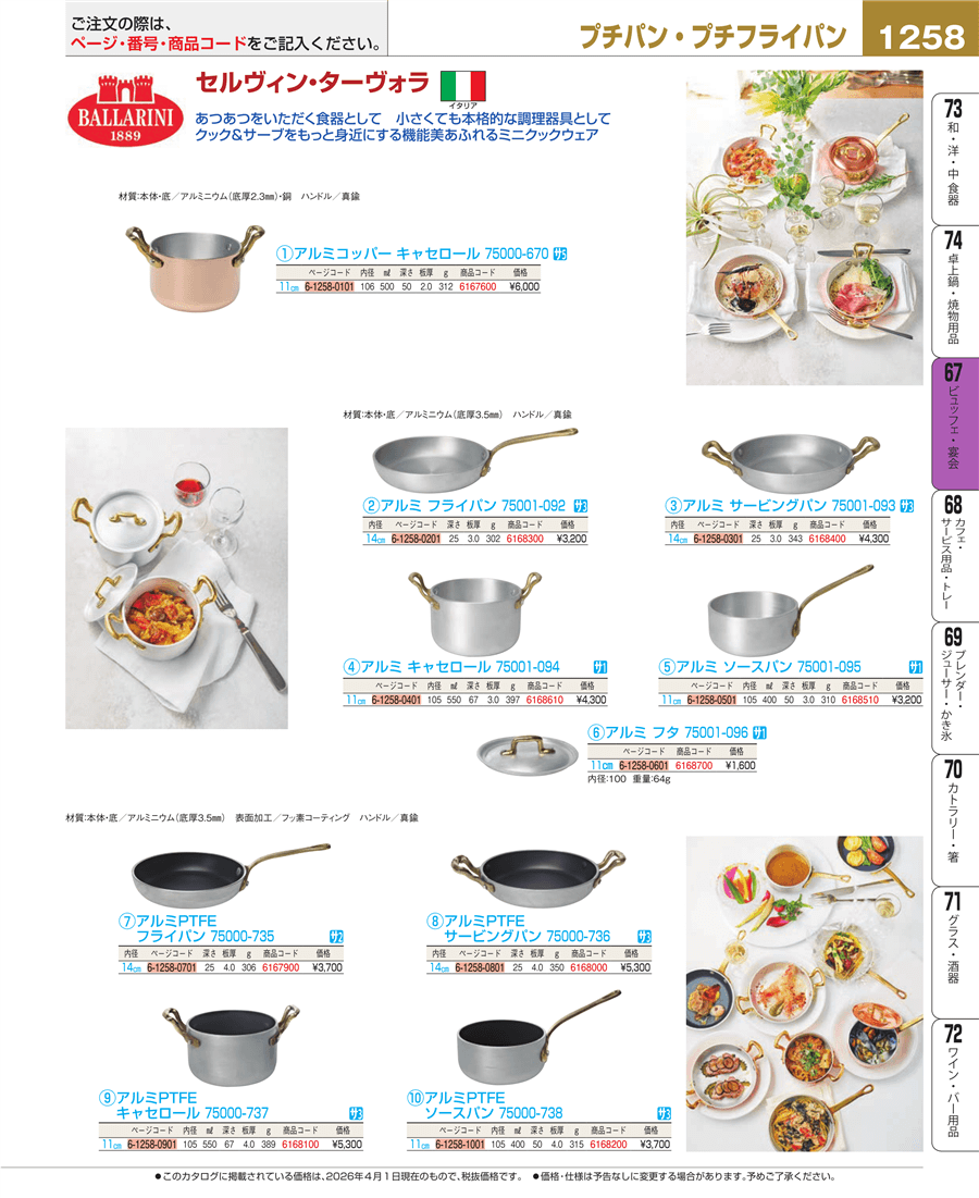 | e26-6167900 | セルヴィン・ターヴォラ アルミ PTFE フライパン 14㎝ 75000-735 | 上代 3,700円(税抜) 見積 | ||