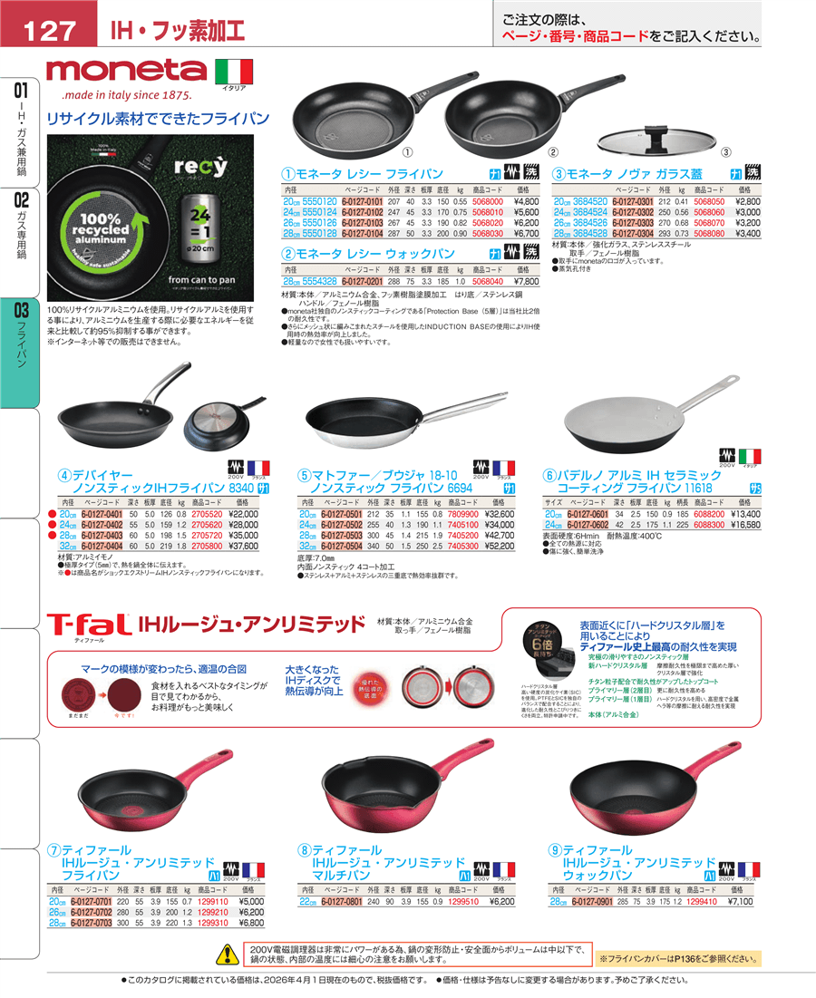 | e26-1299210 | ティファール IHルージュ・アンリミテッド フライパン 26㎝ 05033876 | 上代 6,200円(税抜) 見積
