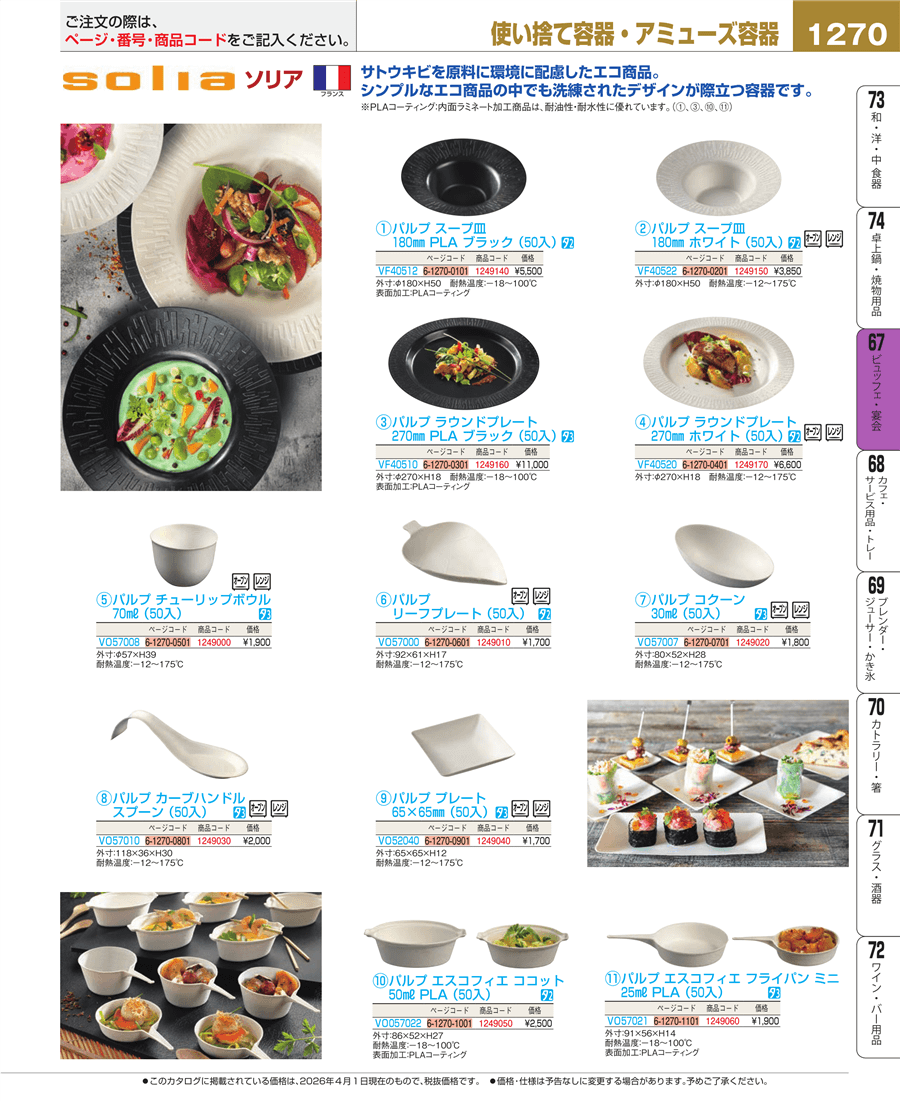 | e26-1249160 | ソリア パルプ ラウンドプレート 270㎜ PLA ブラック(50入)VF40510 | 上代 11,000円(税抜) 見積 | ||