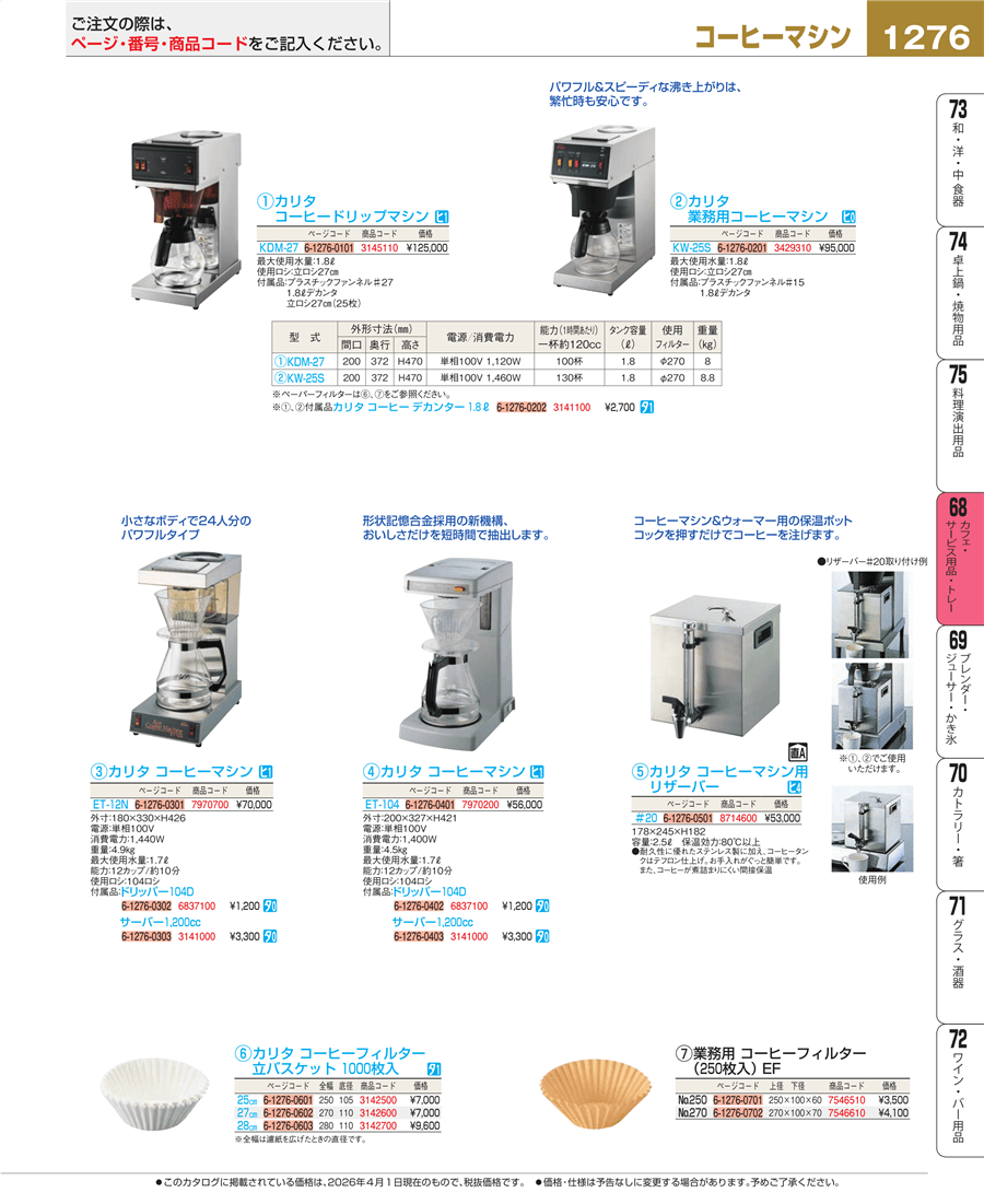 e26-3429310カリタ 業務用コーヒーマシン KW-25S上代 95,000円(税抜)