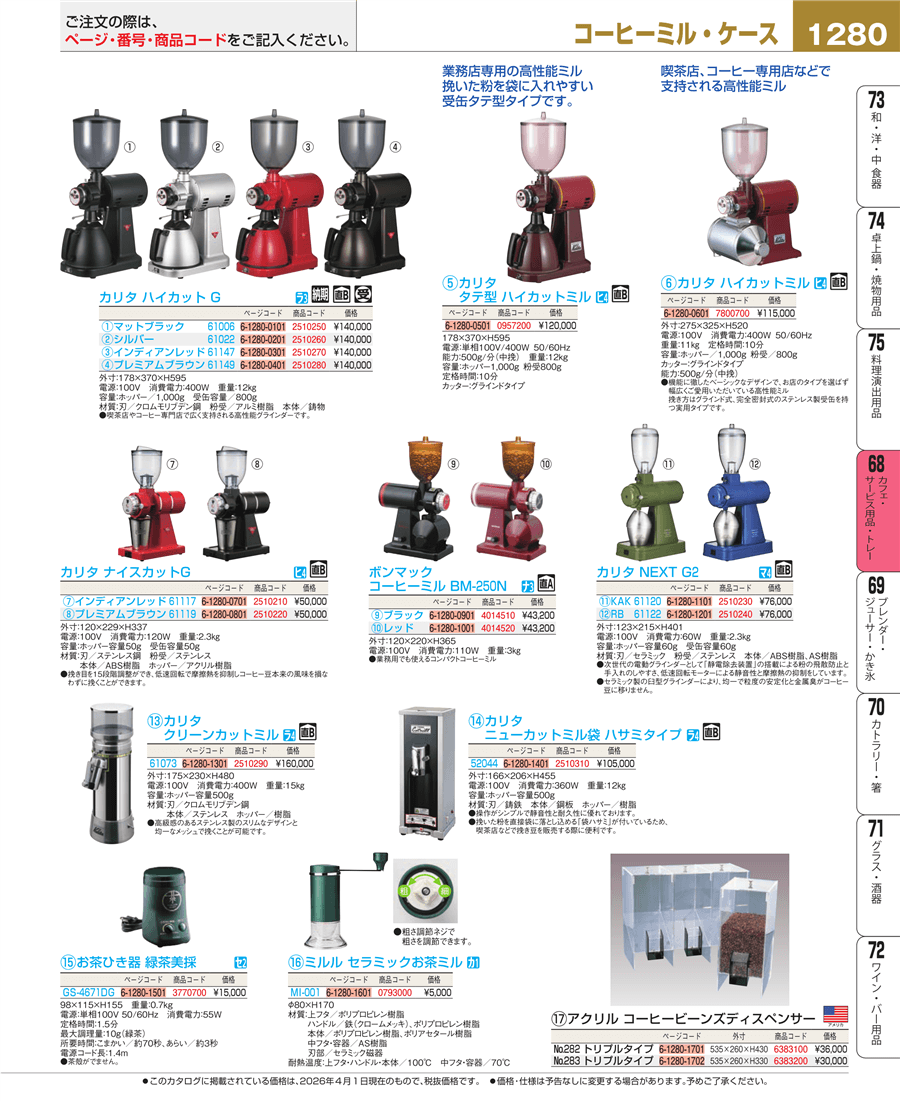 | e26-7800700 | カリタ ハイカットミル 業務用 | 上代 115,000円(税抜) 見積 | ||