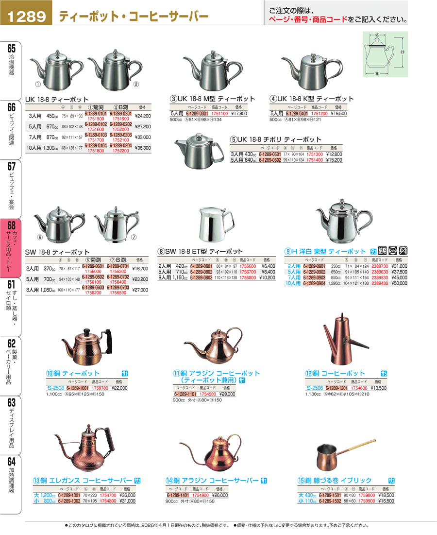 | e26-1752100 | UK 18-8 B渕 ティーポット 7人用 | 上代 33,000円(税抜) 見積 | ||