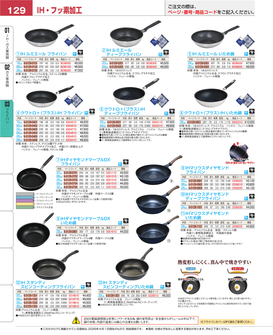 | e26-8036100 | IHルミエール フライパン 26㎝ | 上代 6,500円(税抜) 見積 | ||