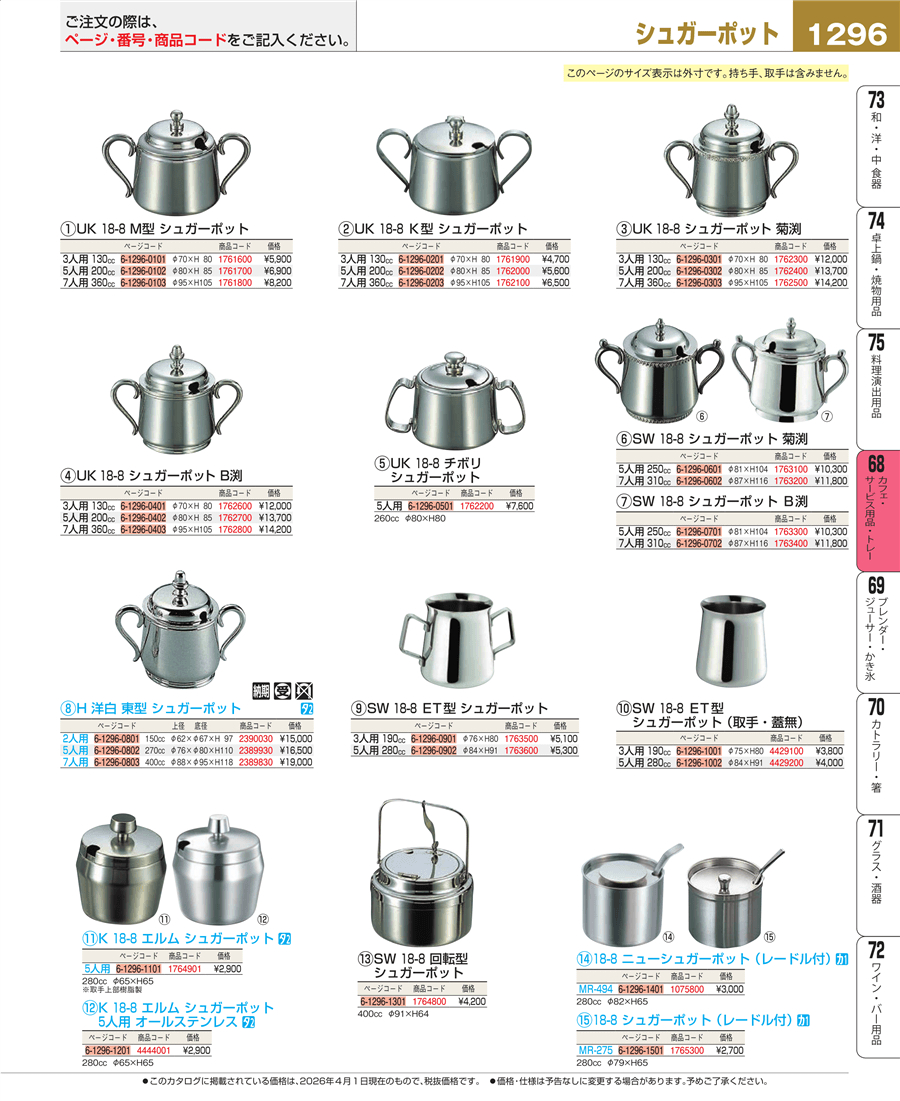 e26-1761800UK 18-8 M型 シュガーポット 7人用上代 8,200円(税抜)