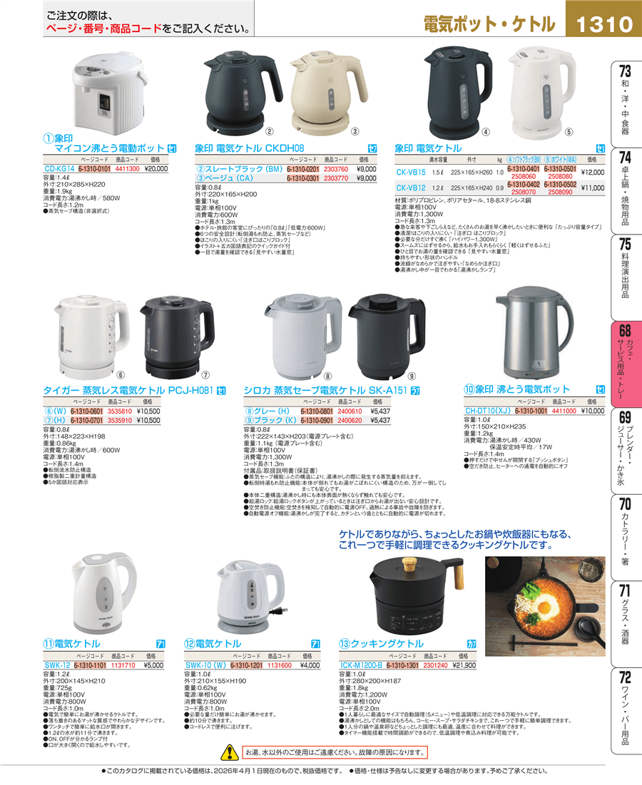 | e26-2301240 | クッキングケトル ICK-M1200-B | 上代 21,900円(税抜) 見積 | ||