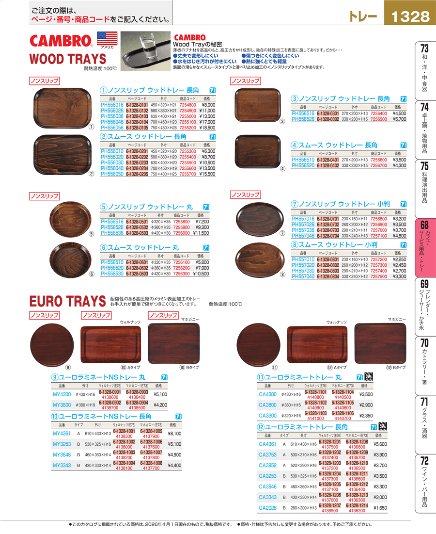 | e26-7255300 | キャンブロ スムースウッドトレー 長角 PH556010 | 上代 6,300円(税抜) 見積