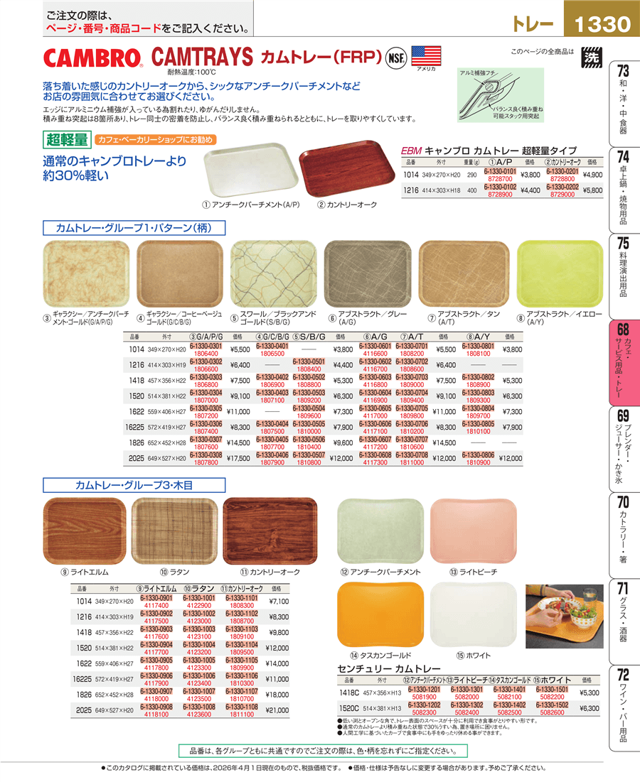 | e26-8728800-1330 | EBM カムトレー 超軽量 1014(304)カントリーオーク | 上代 4,900円(税抜) 見積